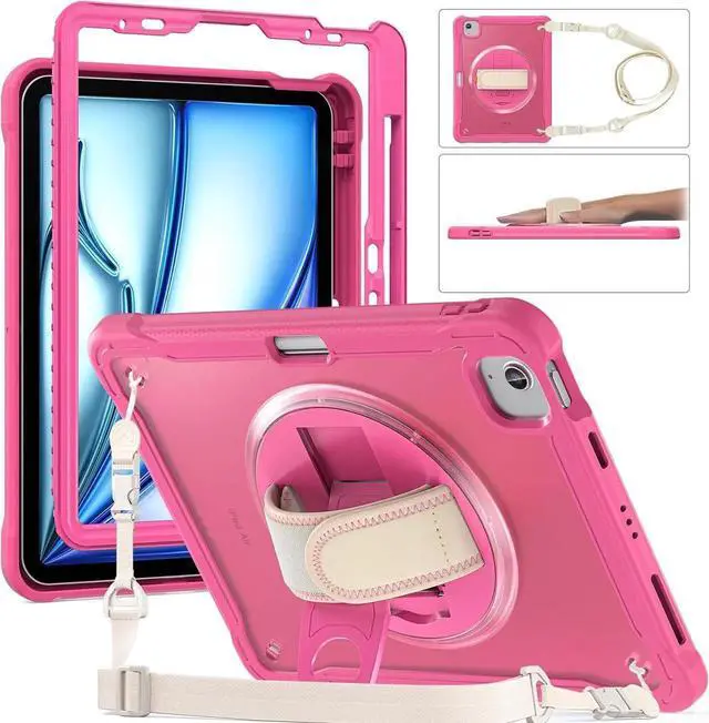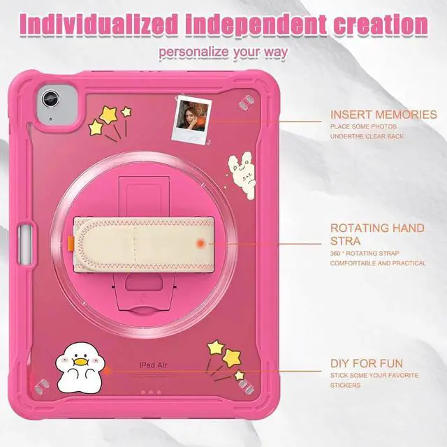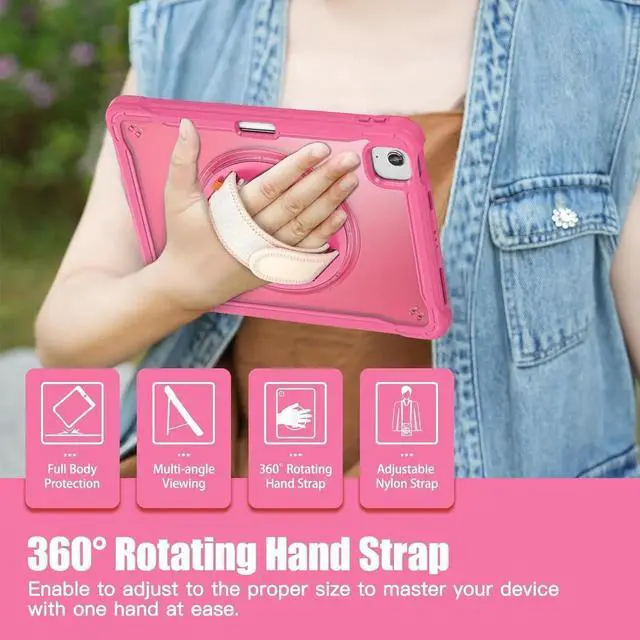 360° Rotating Hand Strap Design: With a 360° rotating hand strap design, this case offers versatile handling options, allowing you to comfortably carry your iPad Air in any orientation, making it ideal for on-the-go use.
