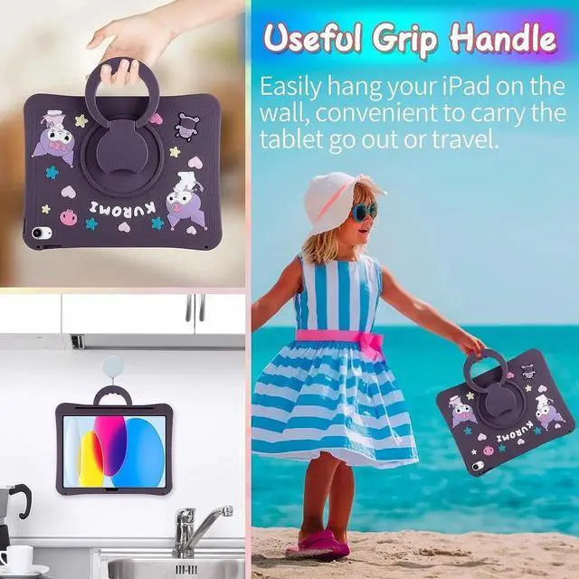 360 °Rotatable & 180° Foldable Handle KickstandThe mutil-functional kickstand design is useful which can be used as horizontal and vertical stand makes you more convenient to read , browse website, watch movies or face video with friends, also come with handle and cute key chain which will convenient to carry-on ipad.