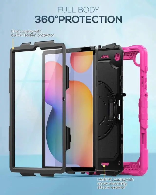 FULL PROTECTION- 3-layer total front-and-back protective case protects your Samsung Galaxy Tab S6 Lite against drops, scratches, shocks and scuffs. The hard internal shell, soft silicone exterior and built-in screen protector deflect everyday action and accidents. Soft-touch material offers a comfortable grip.