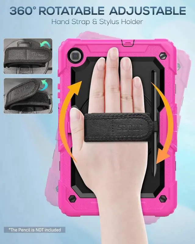EASY-TO-USE HAND & SHOULDER STRAP- With the adjustable handle on the back, you can hold your tablet securely with single hand, and let your other hand free do other things. The adjustable and removable shoulder strap is kids-friendly for carrying the device, it also could hang on the headrest of car seat or wherever you want.