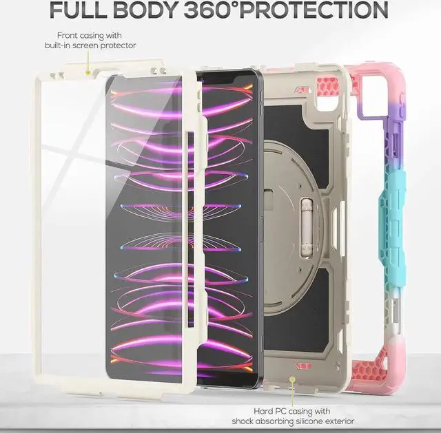 EASY-TO-USE HANDLE & SHOULDER STRAP- With the adjustable handle on the back, you can hold your tablet securely with single hand, and let your other hand free do other things. The adjustable and removable shoulder strap is user-friendly for carrying the device, it also could hang on the headrest of car seat or wherever you want.Supports the 2nd Gen pencil wireless charging. The pencil is not included.