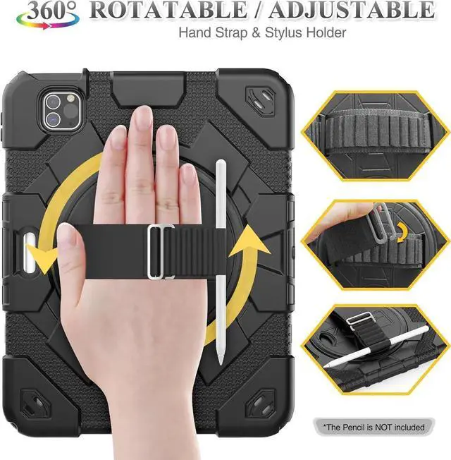 ![Alt view image 4 of 7 - JAENFONG Pad Air 5th/4th Generation/Pro 11 (4th/3rd/2nd) Case, Full-Body Drop Protection Case with Meshdesign Screen Protector Pen Holder [360° Rotate Hand Strap/Stand] (Black)](https://c1.neweggimages.com/productimage/nb640/BK3NS2511130HYTD74F.jpg)