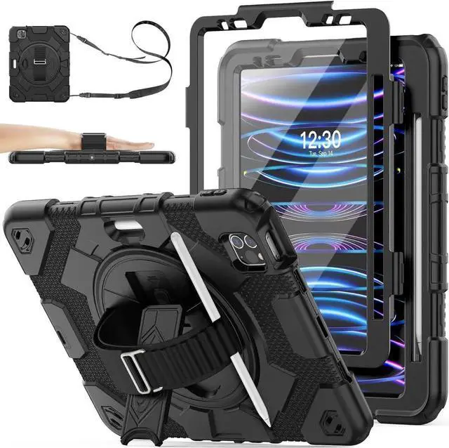 ![Alt view image 7 of 7 - JAENFONG Pad Air 5th/4th Generation/Pro 11 (4th/3rd/2nd) Case, Full-Body Drop Protection Case with Meshdesign Screen Protector Pen Holder [360° Rotate Hand Strap/Stand] (Black)](https://c1.neweggimages.com/productimage/nb640/BK3NS2511130HYTC442.jpg)
