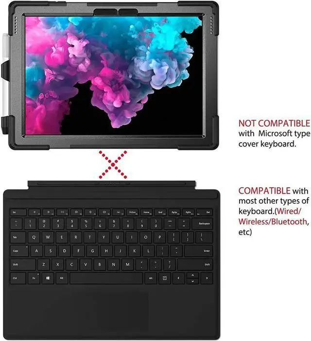 COMPATIBILIETY: Heavy duty shockproof case for Microsoft Surface Pro 7 (2019 Release), Surface Pro 6 (2018 Release), Surface Pro 5th Gen (2017 Release), Surface Pro 4 (2015 Release) and Surface Pro LTE 12.3-Inch tablet.Not Compatible with Type Cover Keyboard
