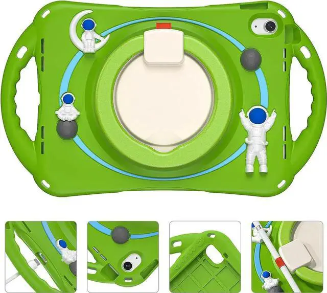 FULL BODY PROTECTION- Made of non-toxic and kids-friendly soft silicone material. Has a cute 3D cute astronauts spaceman pattern appearance design while providing full body protection prevent from drops, shocks, bumps, scratches and dirt. No worry your iPad would slip out of your kids' hands and break. Full access to all ports, buttons and cameras without removing the case.