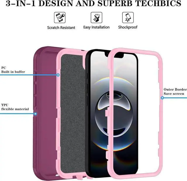 Note: NOT for iPhone 16 or iPhone 16 Plus or iPhone 16 Pro or iPhone 16 Pro MaxPackage includes Soft HD Screen Protector and install them according to the instructionsPerfect protection3-Layer Heavy Duty Full-Body Protector. The case is made of flexible durable TPU Flexible Back and Hard PC Frame material which provide super drop and shock protection for your phone. Shockproof/Drop/Scratch/Dust proofFeaturesAmazing Detachable 3 in 1 design Dust plug can protect USB charging portRaised-up edge can prevent camera and screen from scratch Can be installed or removed quickly and easilyRich Colors and DIY Rich color options are available to decorate your phone Multiple phone cases can be exchanged and matched to create phone cases of different colorsProfessional supportif you have any issues please contact us immediately and always promise a satisfactory solution. Thank you very much for purchasing our produc
