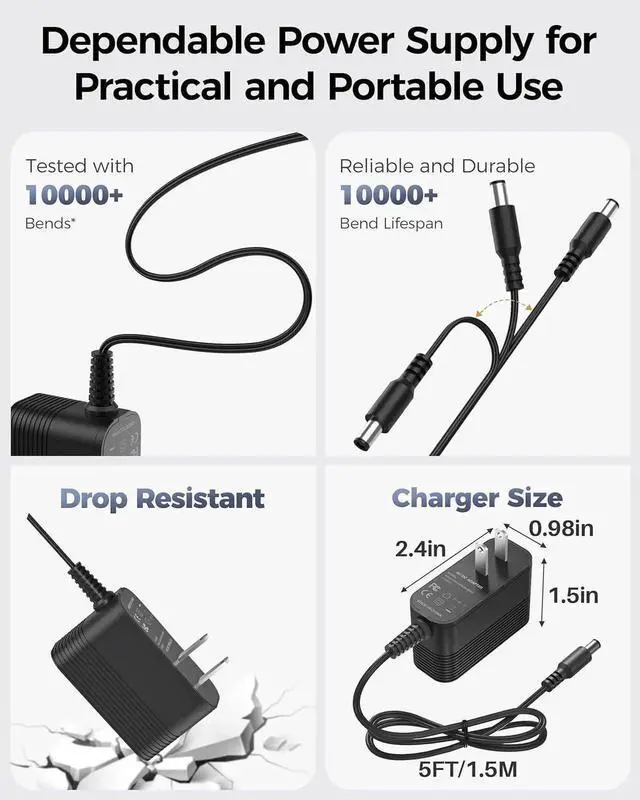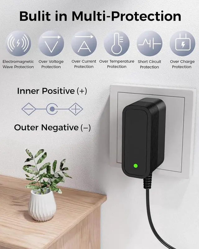 Compatibility: ONLY FOR 12 VOLT DC POWER SUPPLY UNIVERSAL DEVICES 12 V 100 mA to 1000 mA switching 12 v power supply fits for 12 V 1000 mA; 900 mA; 800 mA; 700 mA; 600 mA; 500 mA; 400 mA; 300 mA; 200 mA; 100 mA transformer charger for universal devices. Our charger is only fits for the output dc 12.6V Max 1A devices. If your device's output voltage and current are not 12v and exceed 1A then our charger cannot be adapted for use. Please verify your devices before orderSpecification: