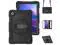 The rugged case is made from polycarbonate and anti-skidding soft silicone, multi-layer protection from the inner shell, outer slipcover, built-in screen protector, keeping our expensive tablets from being damaged by accidentally drops, scratches, shocks. The weight of the heavy duty case is 400g.