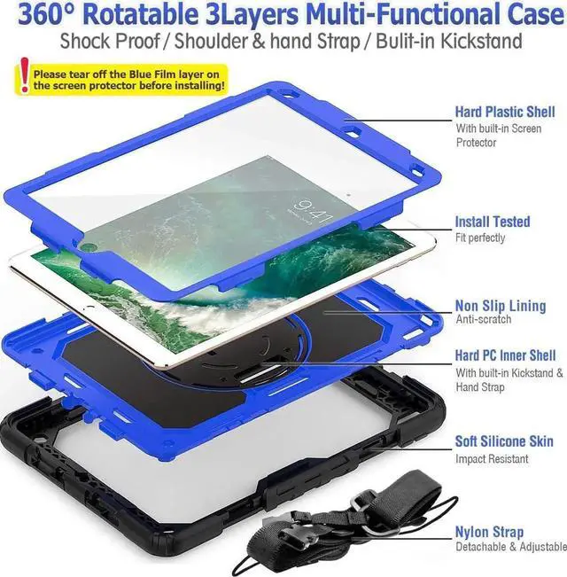 ![Alt view image 6 of 6 - JAENFONG Pad Air 3 2019 / Pro 10.5'' Case, Full-Body Drop Protection Case with Screen Protector Pen Holder [360° Rotate Hand Strap/Stand] for Pad Air 3rd Generation 10.5 inch (Blue+Black)](https://c1.neweggimages.com/productimage/nb640/BK3NS25111405MFS4D8.jpg)