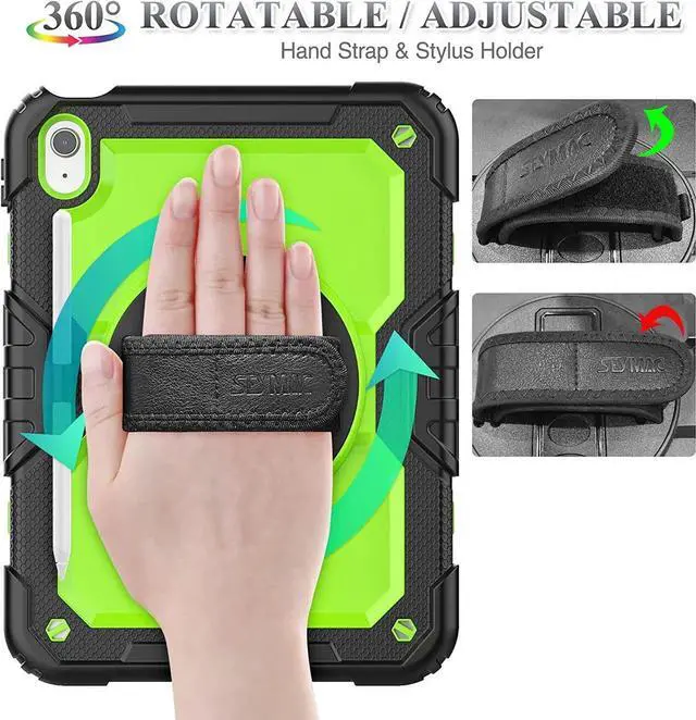 ![Alt view image 6 of 7 - JAENFONG Pad 10th Generation Case 10.9'', Full-Body Drop Protection Case with Screen Protector Pen Holder [360° Rotate Hand Strap/Stand] for Pad 10th Generation 10.9 inch 2022 (Green+Black)](https://c1.neweggimages.com/productimage/nb640/BK3NS25111405NLPK12.jpg)
