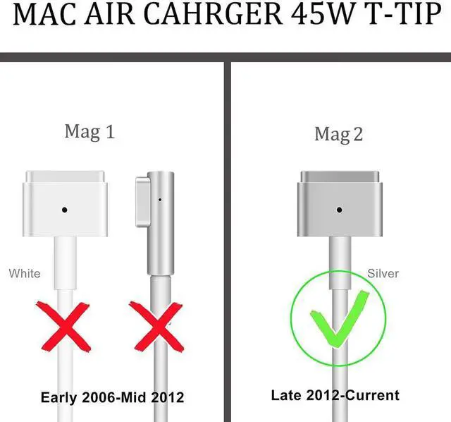 OUTPUT: DC 14.85V - 3.05AR eplacement charger AC adapter for Mac book Air 11 and 13.3 after 2012 with