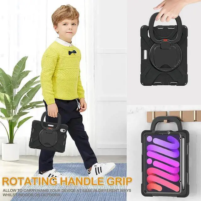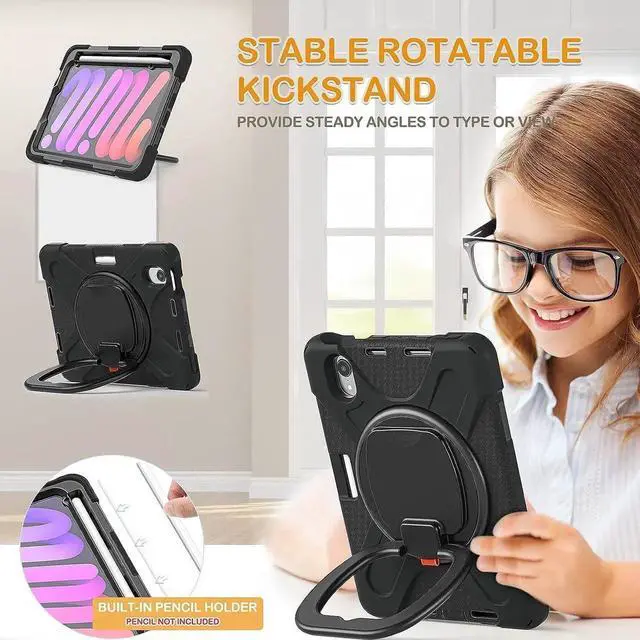![Alt view image 4 of 6 - Kids Case for New iPad Mini 6th Generation 2021 8.3 Inch, Silicone Cover with Pencil Holder[Supports 2nd Gen Pencil Charging], Kickstand, Handle Grip, Shoulder Strap for iPad Mini 6 2021, Black](https://c1.neweggimages.com/productimage/nb640/BK3NS25111406OXDN27.jpg)