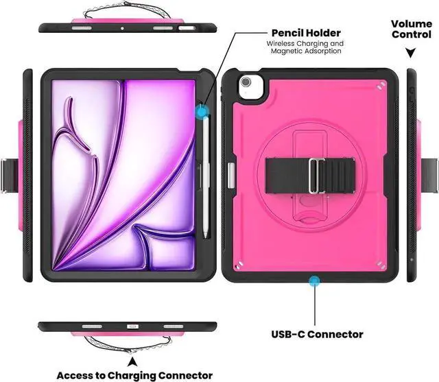 Customizable Hand Strap: A 360° adjustable bracket ensures flexibility in viewing angles, enabling users to effortlessly switch between portrait and landscape orientations without trouble. This feature guarantees optimal viewing comfort whether you're reading, watching videos, or video chatting. Recognizing the importance of ergonomics, this unique element permits users to modify the grip area according to their hand size, reducing strain during prolonged use.