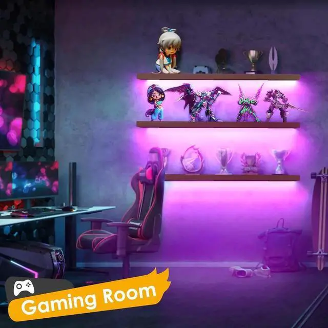 3-Pack led strip lights with remote for shelf 4xAA battery powered (Batteries Not Included) Each strip lights is 20 inches suitable for most floating shelvesBrightness 5050 LEDs which can provide enough brightness28Key Remote control 16 color changes timing mode 30 60 90 120 minutesEasy to install Suitable for installation in living room bedroom playroom