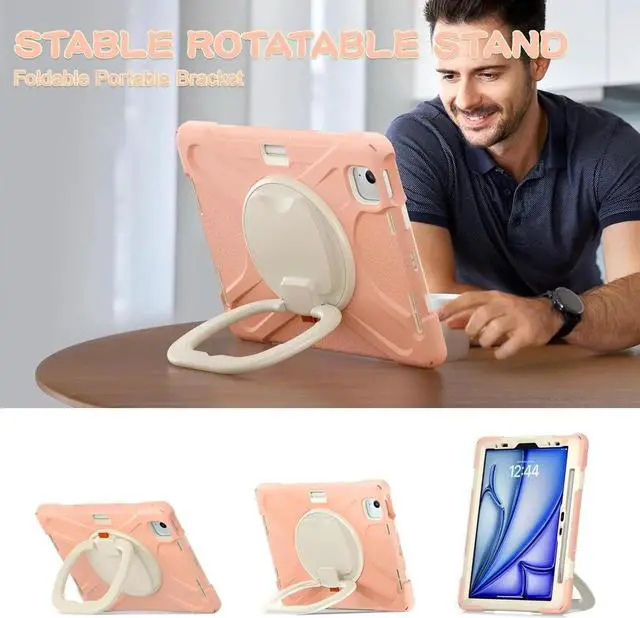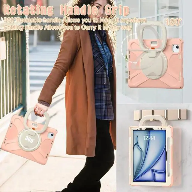 360° 180° Rotating Kickstand & Handle Grip: With rotating adjustable kickstand stable at multi-angles, case for iPad Air 11 inch (M2) offering comfort for viewing, typing, video calls or movie watching. Ideal for students, teachers, engineers, cashiers and waiters, etc