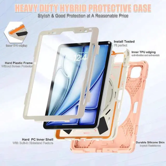 Rugged Shockproof Design: Advanced three layer drop protection nonslip case combined of premium hard plastic and soft silicone cover withstands accidental drop, bumps and shock. Case for iPad Air 11 inch built-in PET Screen Film, protect your tablet from fingerprints and scratches and provides full protection for the screen during daily use