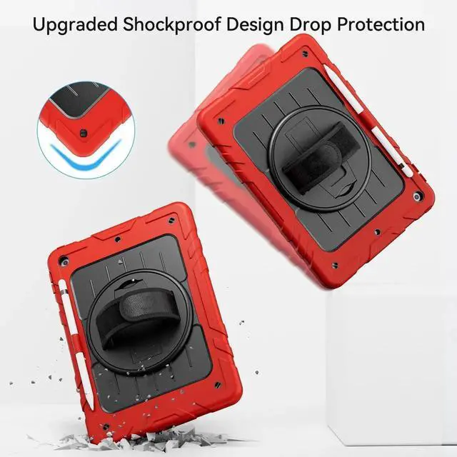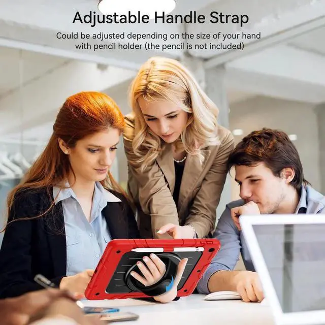 360°Rotating Kickstand & Hand StrapRotatable kickstand easily support your iPad in multi-angle viewing. Moreover,the soft hand strap allows you to hold your iPad firmly and comfortably to prevent accidental drops.And your kids can use iPad easily and safely to study or watch movies.