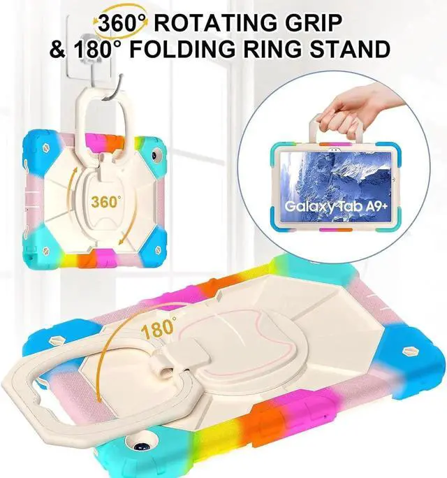 Compatibility with Galaxy Tab A9 Plus: This Shockproof Rugged With Rotating Stand/Pencil Holder/Carrying Shoulder Strap Protective Case only compatible with Galaxy Tab A9 Plus Case 11 inch 2023 Release (SM-X216B/SM-X218/SM-X218B/SM-X216C/SM-X216N/SM-X210).