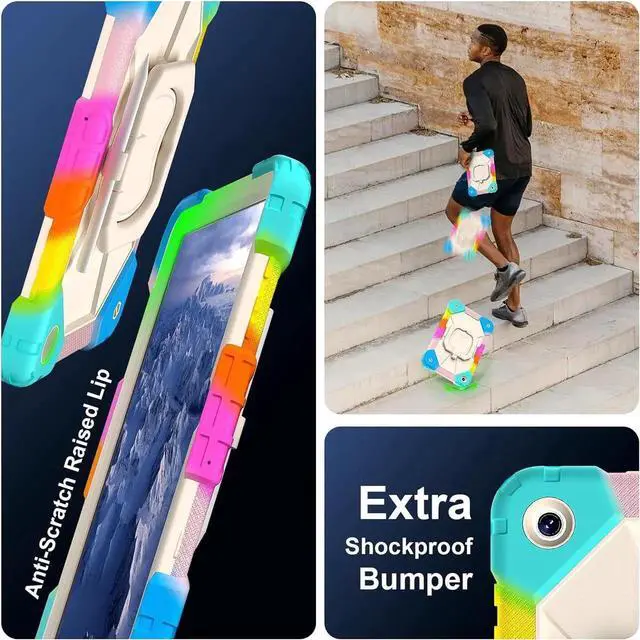 Shockproof Rugged Case: Galaxy Tab A9+ Case made of hard PC and durable soft silicone, 3-in-1 layer full body protection construction provides a perfect protection from Anti-Fall, Anti-Scratch, Anti-Stainning Fingerprints