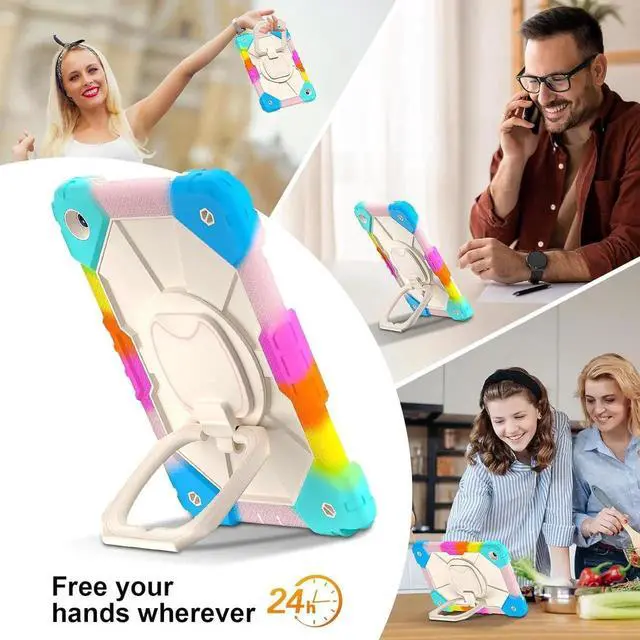 360° Rotating Handle Stand: The 360° Rotating Stand and Handle are very practical and can support horizontal and vertical angles to meet different viewing angles for watching films, working and drawing. The comfortable round handle is easy to grip and carry.