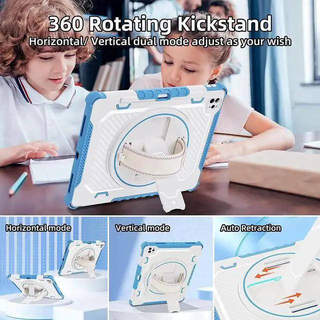 [Lightweight & Durable & Sturdy & Dual Layer Drop Resistant Design] Solid dual layer case all around your iPad offer 360 Degree Full-Body Fall Protection; shock-absorbing TPU inner shell + Hard PC back outer case against accidental drop,bumps, and shock
