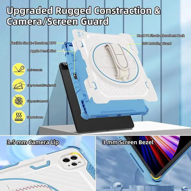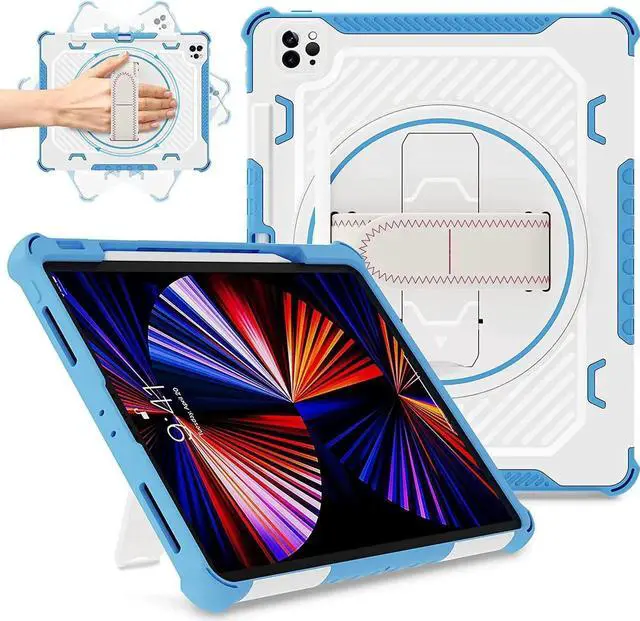 [ 360 Rotating Hand Strap & Stay New ] Adjust rotating hand strap for horizontal or vertical direction fits all size of hands (Small, Medium, Large, Extra-Large),Easy to erase and clean out with wet cloth after using iPad at work or play, our iPad 12.9 newest case always stay new forever. Note: No built in screen protector No pen in the package