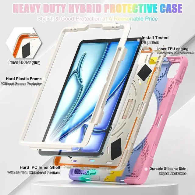 • Exclusive designed tablet case for 13-inch iPad Air (2024) M2 Chip Model:A2898/A2899/A2900.Not Compatible other Generations iPad.