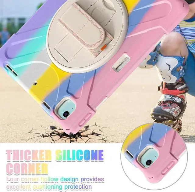 Case for iPad Air 13-inch (2024) M2 Chip Model A2898 Heavy Duty Rugged Durability Silicone Tablet Cover with 360° Rotating Hand Strap Foldable Hidden Stand & Shoulder Strap, Colorful Pink