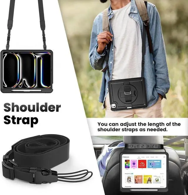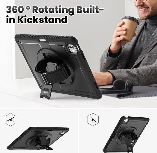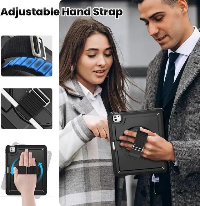 Customizable Hand Strap: A 360° adjustable bracket ensures flexibility in viewing angles, enabling users to effortlessly switch between portrait and landscape orientations without trouble. This feature guarantees optimal viewing comfort whether you're reading, watching videos, or video chatting. Recognizing the importance of ergonomics, this unique element permits users to modify the grip area according to their hand size, reducing strain during prolonged use.