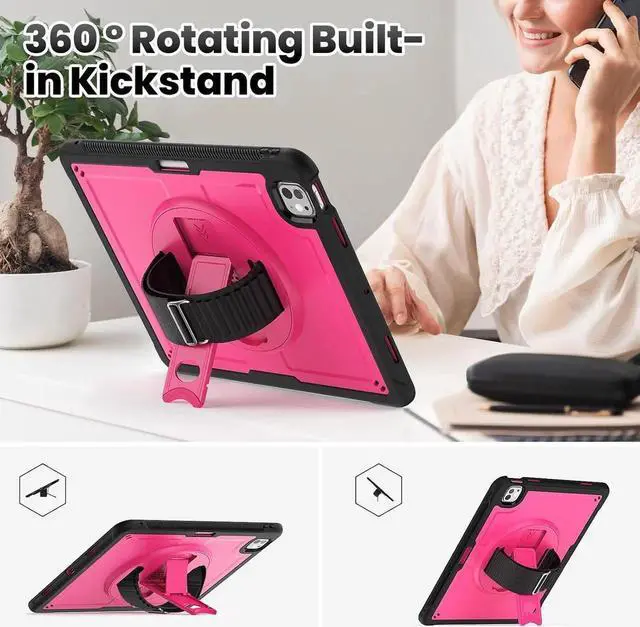 Customizable Hand Strap: A 360° adjustable bracket ensures flexibility in viewing angles, enabling users to effortlessly switch between portrait and landscape orientations without trouble. This feature guarantees optimal viewing comfort whether you're reading, watching videos, or video chatting. Recognizing the importance of ergonomics, this unique element permits users to modify the grip area according to their hand size, reducing strain during prolonged use.