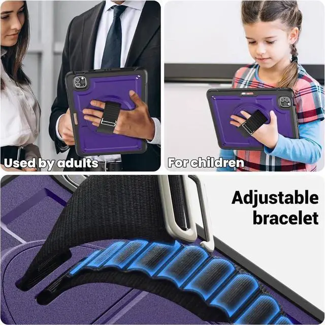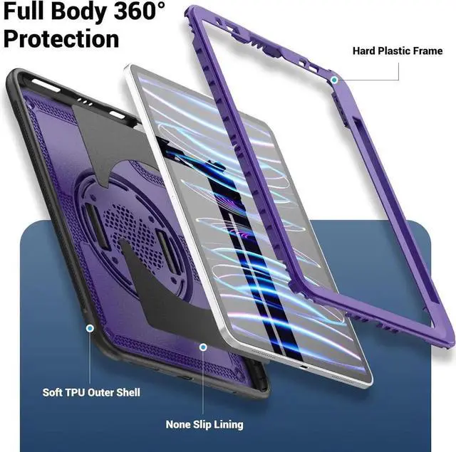 360° Rotating Hand Strap: The 360° rotating hand strap design offers secure and flexible handling options, allowing you to comfortably carry your iPad in any orientation, making it perfect for mobile professionals and students.