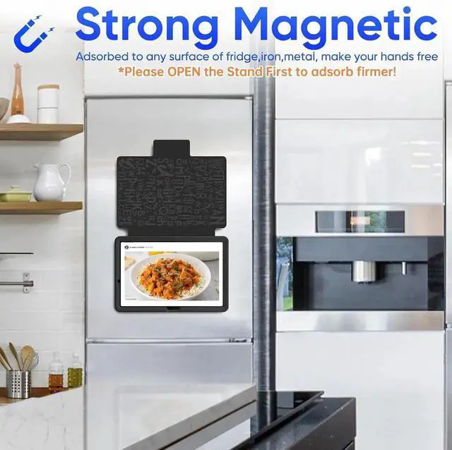 The strong magnetic stand cover can be adsorbed to fridge door or other iron surface like a suction cup, helping free your hands and making it more convenient for you to cook in the kitchen.