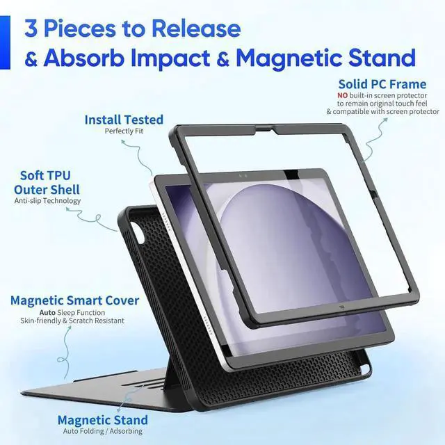 The magnetic smart cover offers automatic sleep / wake function to help save the power of your galaxy tab A9+/A9 Plus tablet.