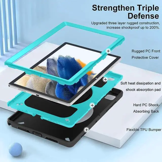 The Case for Galaxy Tab A8 is made of high-quality hard PC + flexible shock-absorbing TPU, a three-layer shockproof structure that passed 26 times 15 feet drop test to provide perfect protection and prevent your Samsung Tab A8 from dropping or scratching.