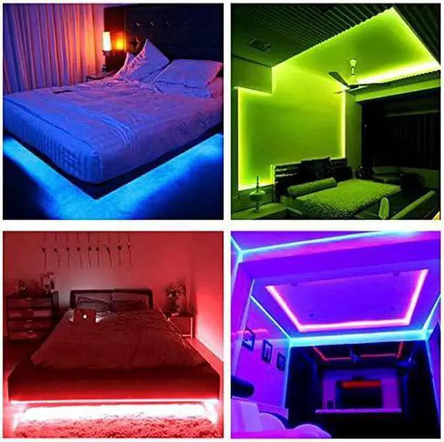Color changing strip lights: 60 feet lights strip have 44 keys ir remote control to provide the primary red green blue and white and also have 16 multicolored options you can choose your favorite color to decorate your roomUpgrade strong self-adhesive: Our led strip lights have improved the adhesiveness of 3m led tapes to stick very well on the dry and smooth surface so please test the led light strips before installationCuttable and linkable: The lights strip can be easily cut every 3 LEDs along with the cutting marks you can link it with other strip led lights by additional connectors; It is NOT included in the packageVariety scenes available: Rgb led lights are easily installed to suitable for indoor decoration colorful your bedroom living room kitchen and whole-home; Also add a festive atmosphere for parties and other activitiesWarm tips: The strips are non-waterproof and don't let lights on the spool for more than two minutes when you testing them they need to dissipating heat to prolong their service life