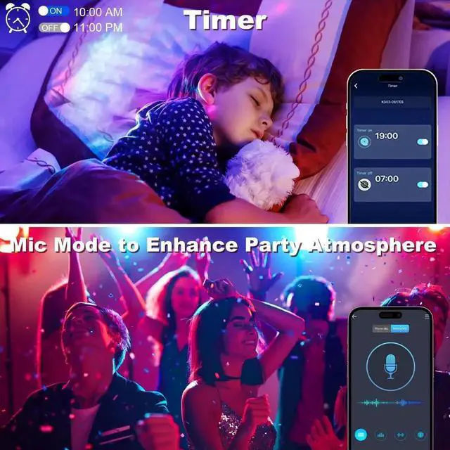 Special Timer: The led lights for bedroom 130+ ft can be used as a light alarm clock you can set the wake-up time and end time to turn it on/off automatically your kids will love it.