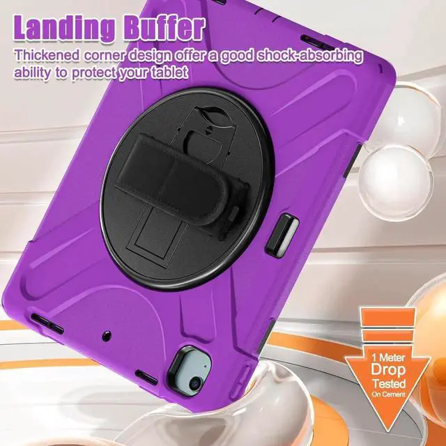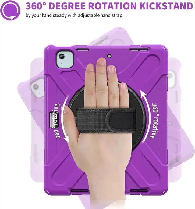 Case for iPad Air 11 inch (2024) M2 Chip Model A2902/A2903 Heavy Duty Rugged Durability Silicone Tablet Cover with 360° Rotating Hand Strap Foldable Hidden Stand & Shoulder Strap, Purple