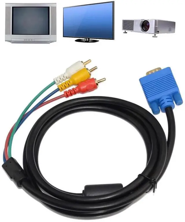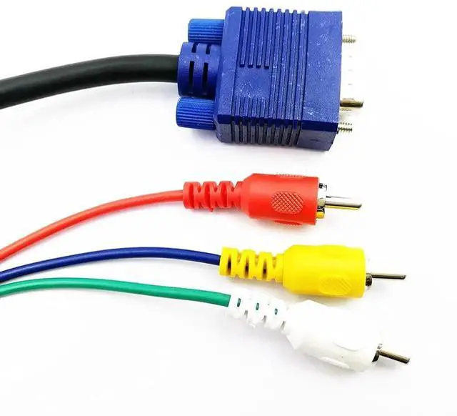 High quality signal transmission Converts VGA to RCA signal. Connector RCA Component Y / Pr / Pb (M x 3). Can only transfer video but not audio. This cable is for Satellite TV HDTV Component RGB Video Y/ Pb /Pr Video and most LCD Projectors. Your display system must support component video (Y Pr Pb) signal output function in order for the image to display properly. Please consult with your VGA card's user manual for more information. Specific TV-out feature on video card is required pleasVGA signal and the color difference signal is the matrix conversion relationship.
