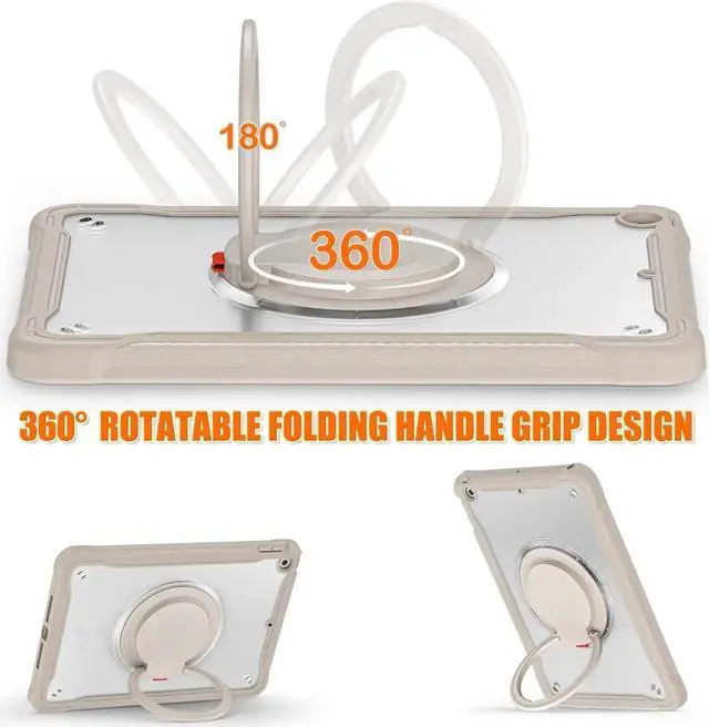 Foldable Portable Bracket: The round handle can also be used as a foldable portable bracket allows for effortless adjustment of your iPad to multiple viewing angles, catering to activities such as watching videos, typing, or engaging in video conferencing.the case also comes equipped with an adjustable nylon shoulder strap,used for car rear seat suspension and various outdoor scenes