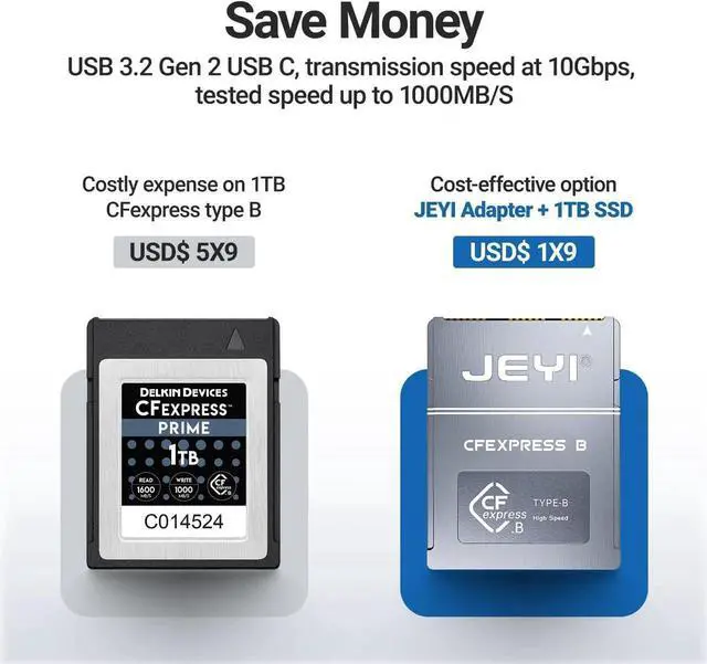 You can use a cost-effective 2230 M.2 SSD with the JEYI CFe to NVMe M.2 Adapter to create a CFexpress Type B camera storage solution, which is more affordable compared to directly purchasing a CFexpress card
