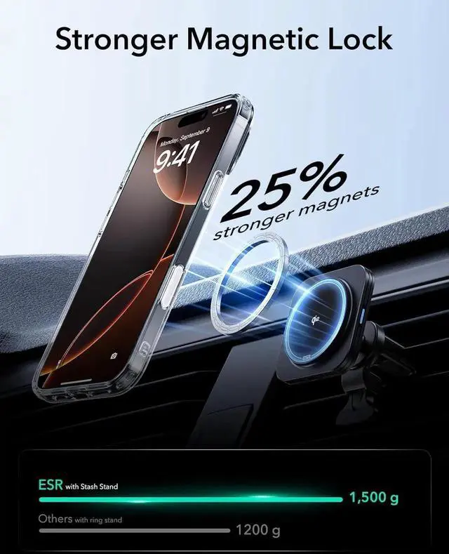 Stronger Magnetic Lock: powerful built-in magnets with 1,500 g of holding force ensure a secure lock with all MagSafe-style accessories for faster, easier charging