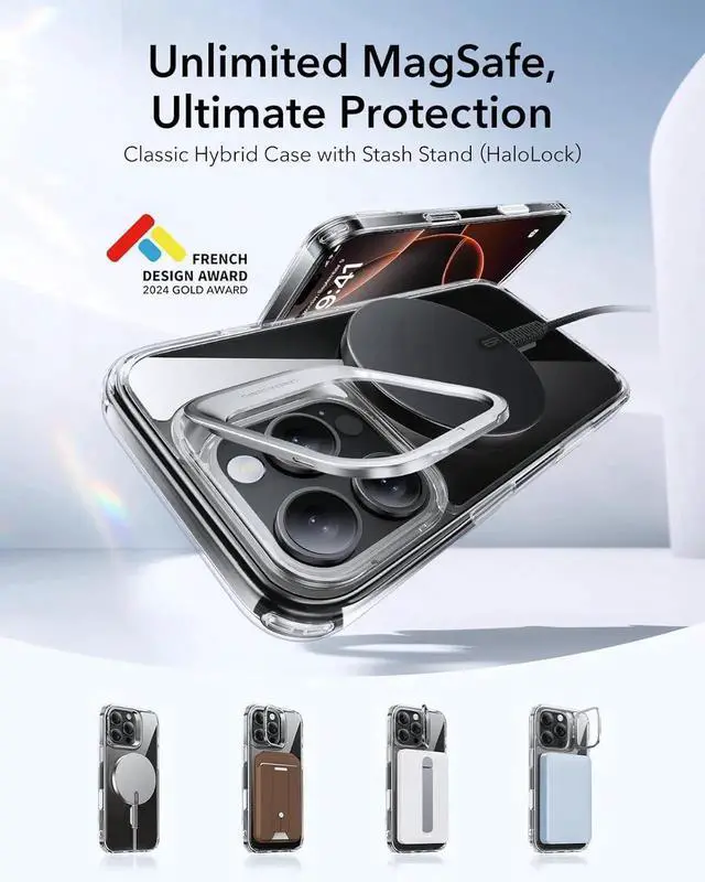 ESR for iPhone 16 Pro Case, Camera Control Button Compatible with MagSafe, Military-Grade Protective Case, Built-in Stash Stand Phone Case, Scratch-Resistant Back Cover, Classic Series, Clear