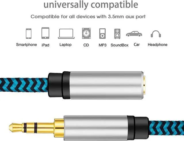 Aux Port: 3.5 mm audio extension cable extends the connection between your iPhone iPod MP3 players smarphones tablet or any other 3.5 mm aux port equipped devices to your headphone earphone speaker car stereo or home theater system etcUniversally