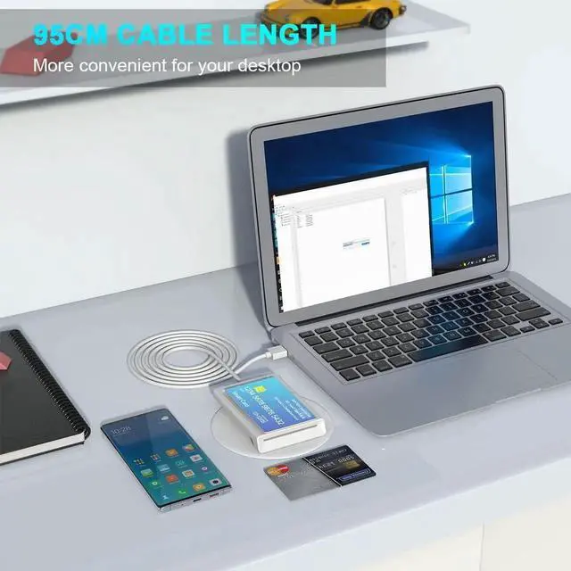 Credit card reader effortless setupChip reader features a plug-and-play design, eliminating the need for drivers or installation processes. Equipped with a USB interface, this smart card reader adheres to the CCID standard and is PCSC compliant, ensuring seamless integration with a wide range of devices and systems. Our nfc reader writer is compatible with virtually all contact chip cards or contactless cards and PC operating systems, including Windows, MacOS, Linux, and Android.