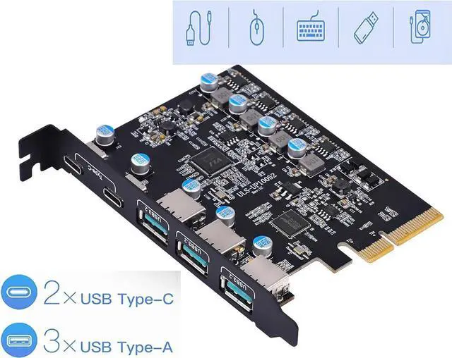![Alt view image 6 of 7 - JAENFONG PCIe Gen3 x2 USB 3.2/3.1 Card - PCI Express to 5-Port[Type C (2), Type A (3) ] USB 3.2 HUB Internal Expansion Card Contronller Adapter PCI Express Card Desktop PC Support Multiple INs](https://c1.neweggimages.com/productimage/nb640/BK3NS2511150GAZU07A.jpg)