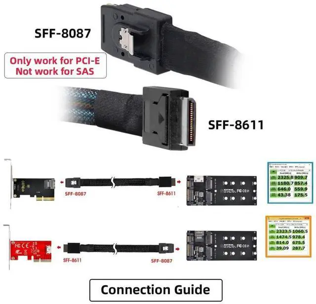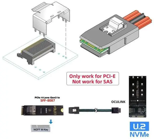 Oculink SFF-8611 4i to SFF-8087 36Pin PCIe PCI-Express Slimline SSD Data Active Cable 50cm