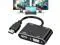 HDMI to VGA+HDMI AdapterOur 2-in-1 HDMI to VGA & HDMI Adapter allows you to connect two external monitors at the same time via HDMI and VGA port for extending or mirroring but if you using both ports simultaneously then the two monitors will only show the same contents.