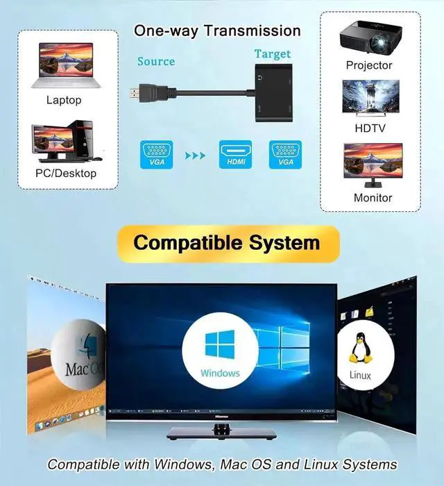 Durable and Portable: Aluminum frosted shell which has the advantages of anti-skid wear-resistant anti-scratch etc. This VGA adapter is easy to carry on a business trip in your laptop bag. You can expand the computer screen to a large screen(Projector/Monitor) for presentation. It is super convenient for meetings and family entertainment.