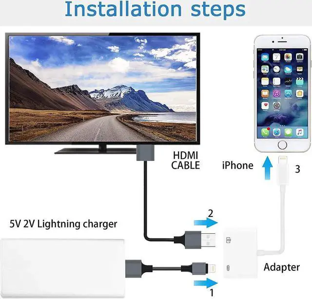 iPhone to HDMI Adapter to TV The lightning to HDMI adaptersupports mirroring of what is displayed on your device screen including apps presentations websites slideshows and more to your HDMI enabled HD TV display projector or other compatible display in up to 1080P HD. Provides a superb visual feast in everyday life and work. Widely Compatibility HDMI to iPhone adapter for TV is compatible with iPhone 14/14 Plus/14 Pro/14 Pro Max/13/13 Mini/13 Pro/13 Pro Max/12/12 Mini/12 Pro/12 Pro Max/11/11 Pro/11 Pro Max/SE 2020/XS/XS Max/XR/X/8/8 Plus/7/7 Plus/6s/6s Plus/6/6 Plus/5 Support iOS 10.3 above. Plug and Play No Need Install Any Driver/App & Personal Hot spot or WIFI No Need to adjust the Mirror of iPhone/iPad easy to use Plug and Play.
