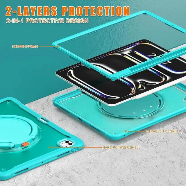 Dual-Layer Protection: The iPad Pro protective case offers lightweight yet durable dual-layer protection, with a transparent plastic back shell that can hold personalized stickers, embedded with soft TPU edges, and a premium screen protection frame.